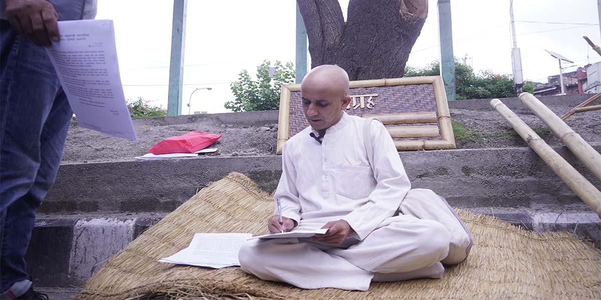 सिंहदरबारको दक्षिण गेट अगाडि कपाल मुन्डन गरि बाँसका मुडा बोकेर उनले सत्याग्रह सुरु गर्न लागेका थिए । तर निषेधित क्षेत्र भएकाले प्रहरीले उनलाई सुरक्षाकासाथ माइतीरघरमा लगेर छाडेको छ । उनले त्यही सत्याग्रह सुरु गरेका हुन् ।