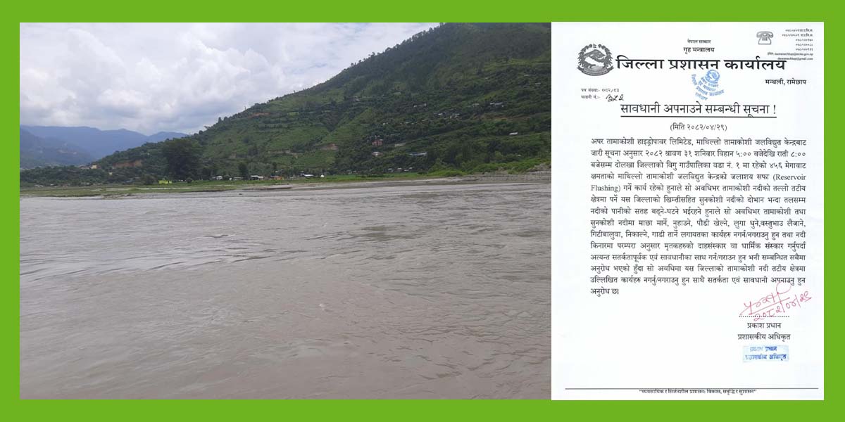 तामाकोशी–सुनकोशी नदी किनारमा विशेष सतर्कता अपनाउन आह्वान