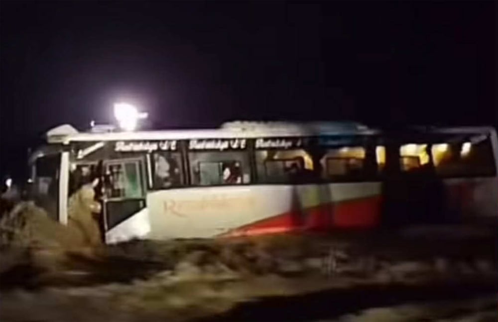 विनयी खोलामा बाढी, डाइभर्सन बगाउँदा बस अलपत्र : यात्रु सकुशल उद्धार