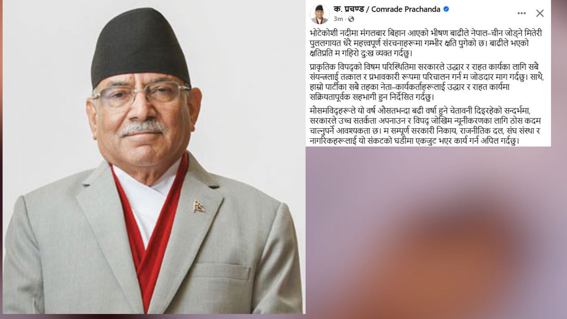 संकटको घडीमा सबै राजनीतिक दल, संघ संस्था एकजुट हुन आवश्यक छः प्रचण्ड