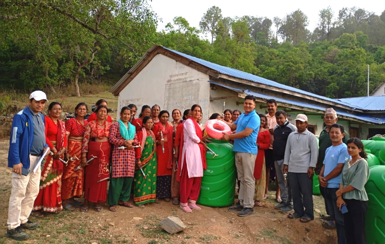 महिला किसानलाई पानी सङ्कलन गर्ने ट्याङ्की र सिँचाइ पाइप